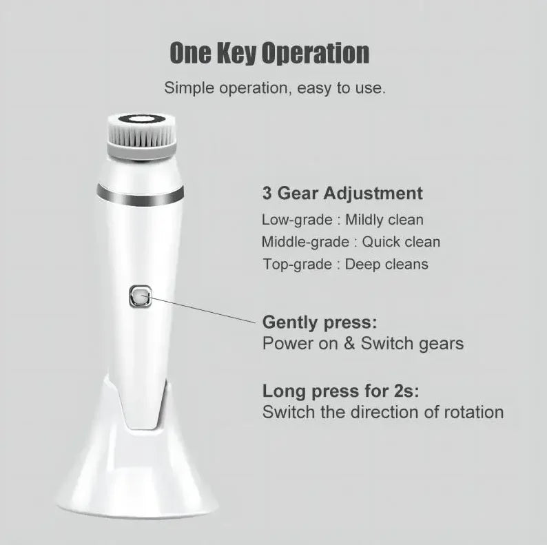 4‑in‑1 veido valymo šepetėlis, atsparus vandeniui IPX7 — gilus valymas ir masažas